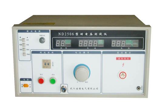 其次,在儀器使用的過程中,1、耐壓測試儀的供電電源必須有良好的接地,否則,當儀器輸出短路時,使儀器外殼帶有高壓,人接觸外殼會發(fā)生意外事故。如供電電源沒有接地,請使用儀器電源輸入座旁的輔助接地端,使其與大地良好接觸。2、儀器的“回路端”與被測物地端、外殼或一端連接良好,否則被測物帶有高壓,可能發(fā)生意外事故。3、打開電源前一定要將“電壓調(diào)節(jié)”旋鈕調(diào)至“0”位置,打開電源后,還要按一下“復(fù)位”按鈕,使輸出電壓斷開,測試燈不亮。4、在按下或彈出交/直轉(zhuǎn)換開關(guān)之前,要保證儀器處于“復(fù)位”狀態(tài),否則會損壞本儀器。5、在連接或接觸測試導(dǎo)線前,一定要保證輸出電壓表顯示為“0”以及“復(fù)位”狀態(tài),在電源受干擾的環(huán)境下,請關(guān)機后連接被測物。6、當儀器處于啟動狀態(tài)或測試高壓未釋之前,決不能觸及被測物、測試線或高壓輸出端。7、嚴禁將高壓輸出端的高壓與機殼短路,以免損壞高壓變壓器,測試端與機殼不相連,雖然高壓輸出端允許與回路端短路,但應(yīng)盡可能避免這種短路發(fā)生,特別是漏電流選擇在100mA檔時。
