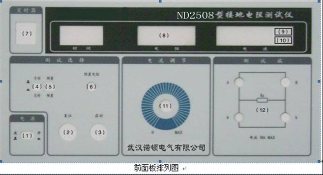 (11)“測(cè)試電流”調(diào)節(jié):調(diào)此調(diào)壓器來調(diào)節(jié)輸出電壓,從而調(diào)節(jié)負(fù)載中的測(cè)試電流至規(guī)定值。
