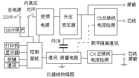 儀器內(nèi)部裝備了高壓升壓變壓器,并采取了過零合閘、防雷擊等安全保護措施。試驗過程中輸出0.5KV~10kV不同等級的高壓,操作簡單、安全。