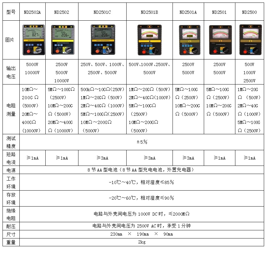 我公司生產(chǎn)的ND25系列絕緣電阻測(cè)試儀采用超薄形張絲表頭、多種電壓等級(jí)輸出、容量大、抗干擾強(qiáng)、交直流兩用(C型)、操作簡(jiǎn)單、具有時(shí)間提示功能。是測(cè)量變壓器、互感器、發(fā)電機(jī)、高壓電動(dòng)機(jī)、電力電容、電力電纜、避雷器等絕緣電阻的理想測(cè)試儀器。