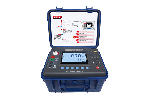 ND2502D數(shù)字式絕緣電阻測試儀又名兆歐表、高壓絕緣電阻測試儀等,用于絕緣電阻的測試。本儀表具有LCD大屏幕灰白背光顯示、數(shù)據(jù)存儲、數(shù)據(jù)查閱、報警、自動關機等功能。同時還具備測量直流電壓交流電壓吸收比和極化指數(shù)功能。整機美觀高檔,量程寬廣,分辨率高,操作便捷,攜帶方便,準確、可靠、性能穩(wěn)定,抗干擾能力強。而且具有防震、防塵、防潮結構,是電信、電力、氣象、機房、油田、機電安裝和維修以及利用電力作為工業(yè)動力或能源的工業(yè)企業(yè)部門常用而必不可少的儀表。它適用于測量各種絕緣材料的電阻值及變壓器、電機、電纜及電器設備等的絕緣電阻。